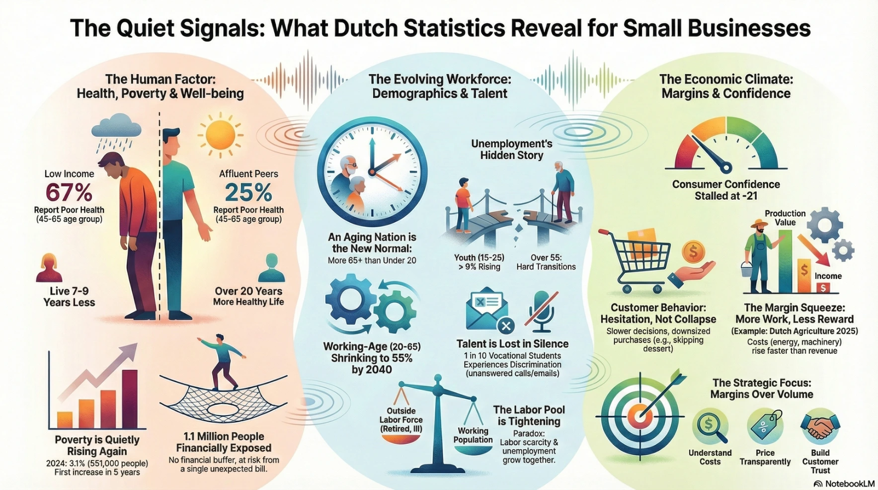 We integrate into your business as an ongoing operating partner. We combine horizon analysis, market pulse interpretation, Dutch economic awareness, and governance discipline to improve your decisions, strengthen your positioning, adjust pricing when needed, check key documents and contracts, and enforce a structured operational rhythm that helps you reach the goals you set.