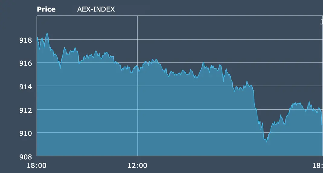 Amsterdam’s AEX Index closed today with a clear dip, 910.69, down 7.17 points or -0.78%. The mood was not dramatic, but distinctly alert, like a room where the air changes just enough to notice. Today, the market wore caution as a tailored suit: composed, not panicked, but aware that confidence can fray at the seams.