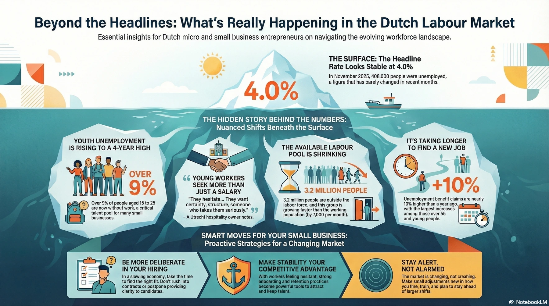 Finally, these numbers are a reminder to stay alert, not alarmed. The Dutch labour market is not in crisis. But it is changing direction. For micro-entrepreneurs, the risk is not the headline unemployment rate. It is assuming that yesterday’s labour dynamics will quietly continue tomorrow.