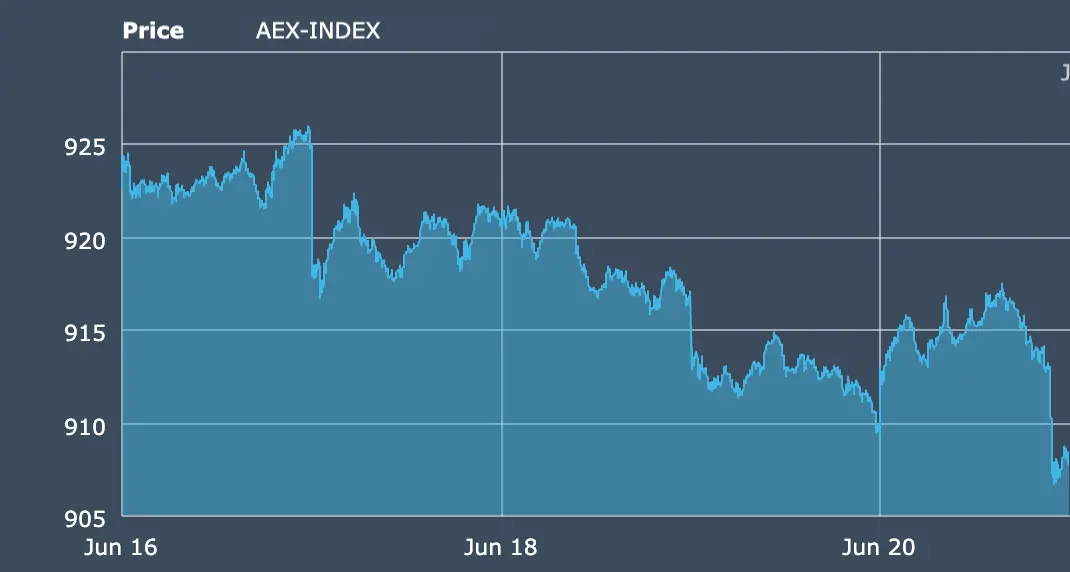 The AEX closed at ~929.5 today, retreating 0.5 %, and bringing the weekly drop to nearly 1.3 %. It was a subdued, corrective cadence, steady without turning bearish, but not confident enough to reclaim recent highs.